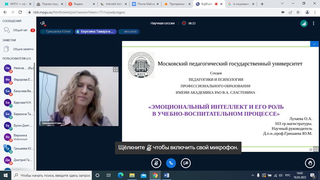 18 марта 2022 года состоялась научная сессия кафедры педагогики и психологии профессионального образования им. академика РАО В.А. Сластенина.