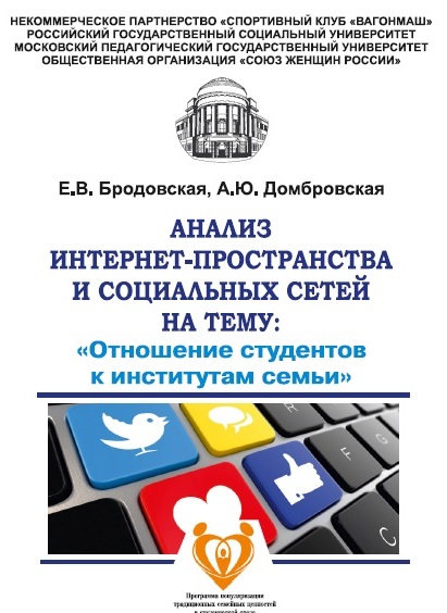 Аналитическая записка по результатам исследования «Отношение студентов к институту семьи: репрезентация семейных ценностей в социальных медиа Рунета» содержит результаты анализа репрезентации семейных ценностей в социально-медийных сообщениях российской молодежи. Полученные данные сопоставляются с результатами опросов, проведенных вне интернет-пространства, с целью получения объективных и достоверных данных о сформированности семейных ценностей и иных традиционных духовных ориентиров у современной молодежи России.