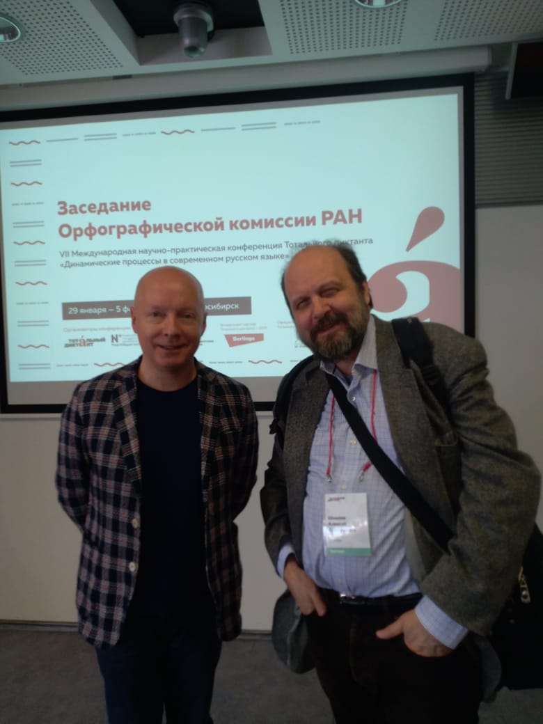 31.01.2019 – 02.02.2019 в Новосибирском государственном университете прошла VII Международная научно-практическая конференция Тотального диктанта «Динамические процессы в современном русском языке», в которой приняли участие профессор кафедры русского языка Института филологии МПГУ доктор филологических наук, председатель Орфографической комиссии РАН Алексей Дмитриевич Шмелев и доцент кафедры русского языка Института филологии МПГУ кандидат филологических наук, член Орфографической комиссии РАН Станислав Викторович Иванов.